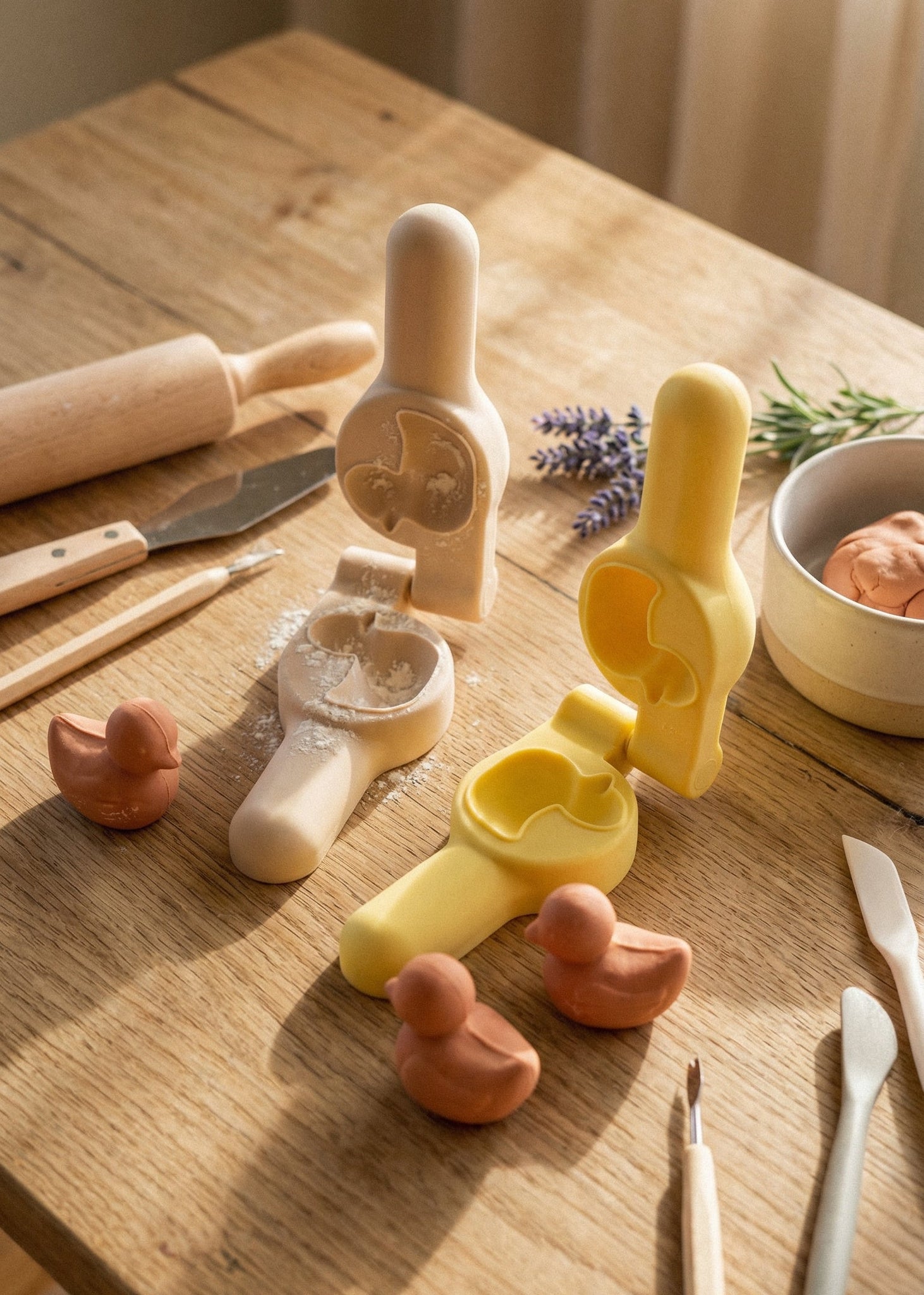 Enjoy a fun and unique sensory play experience with our eco presses. Use playdough, clay, kinetic sand or even cookie dough inside the press and squeeze closed to form shapes. Paint, decorate or squash and reuse… For sticky bases, like clay and cookie dough, a little flour inside the press may help.