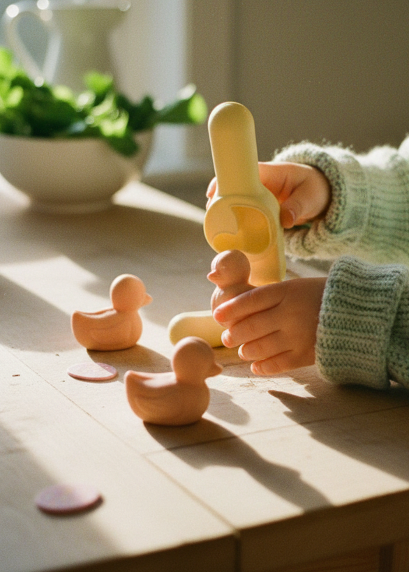 We 3d print our eco presses from PLA, which is a plant-based bioplastic derived from renewable resources, such as corn starch, tapioca root or sugarcane. The product also contains a stainless steel screw, which is secured with non-toxic glue. This product will withstand wet sensory bases, like water beads, food and fizzy potion play, just remember to HAND WASH and immediately dry after use to prevent moisture absorption and warping. We don’t recommend immersing in liquid for long periods but a little splash and fizz will be fine. PLA is not hydrophobic and may absorb colours from paint, fizz and food.
